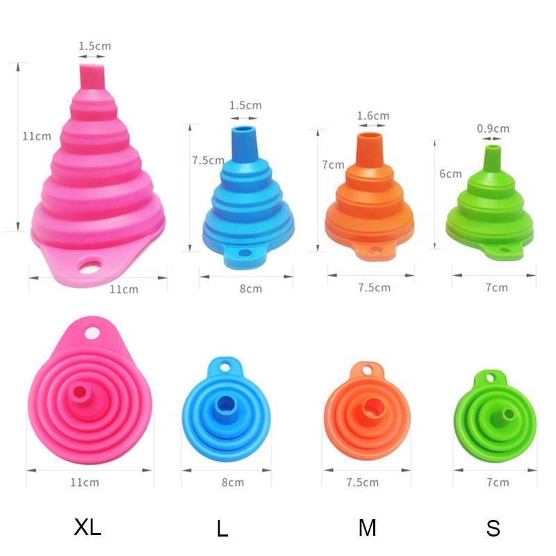 Save space and simplify your kitchen tasks with our collapsible silicone funnel!